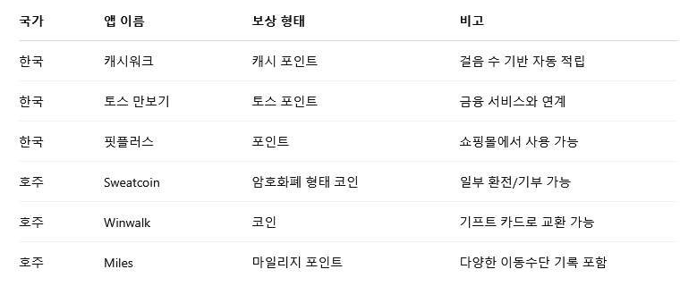 • 호주에서는 Sweatcoin + Miles 조합이 리워드 폭이 넓고 환금성도 좋습니다.