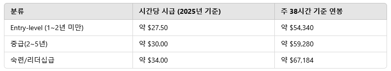 분류시간당 시급 (2025년 기준)주 38시간 기준 연봉