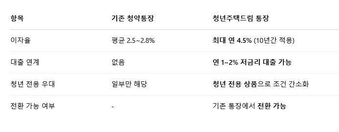 2025년 정부가 새롭게 출시한 '청년주택드림 청약통장'은 연 4.5% 고이자와 함께 청약 당첨 시 저금리 대출까지 지원합니다. 지금 바로 조건 확인하고 내 집 마련의 첫걸음을 시작하세요.