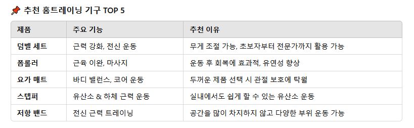 다음은 가성비가 뛰어나면서도 효과적인 홈트 기구들입니다.