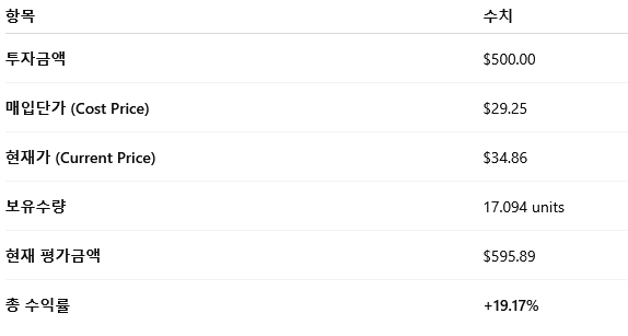 인플레이션 방어용으로 괜찮다는 생각에 테스트 삼아 500달러만 소액 투자를 시작했습니다.