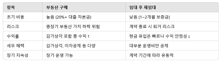 3. 🏠 부동산 구매 vs 임대 후 재임대 전략 (Rental Arbitrage 포함)