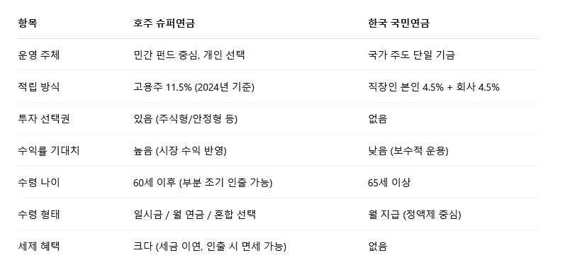 호주 수퍼연금 vs 한국 국민연금 주요 비교 포인트 7가지
