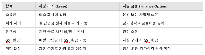 절세를 위한 차량 리스 vs 금융 옵션 비교