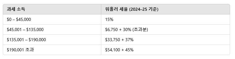소득 구간거주자 세율 (2024–25)워홀러 세율