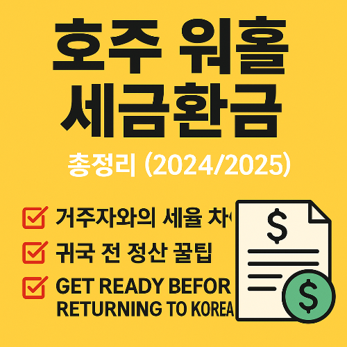호주 워홀 세금에 대해 제대로 알고 계신가요? 워홀 기간 중 납부한 세금 환급부터 귀국 전 준비까지, 놓치면 손해보는 세금 정보를 총정리했습니다. 세금 환급받는 법, 주의사항, 귀국 전 정리까지 실속 가이드!