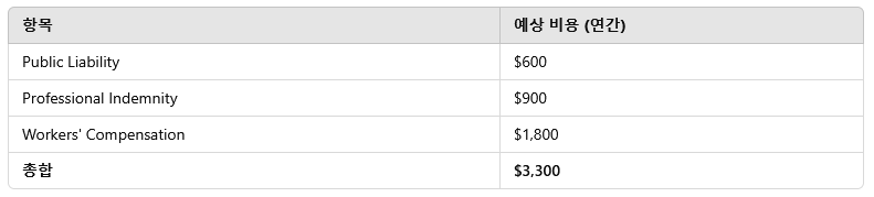 호주에서 자영업을 시작할 때 보험은 선택이 아닌 필수입니다. 특히 2인 공동 창업 또는 1~3명의 직원을 고용하는 소규모 사업자라면 초기 리스크를 최소화하기 위한 보험 가입이 중요합니다.