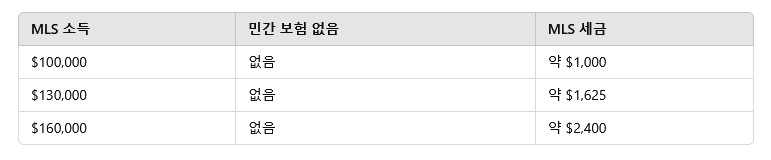 | MLS 부과 기준 | 개인 $97,001 이상 / 가족 $194,001 이상 |