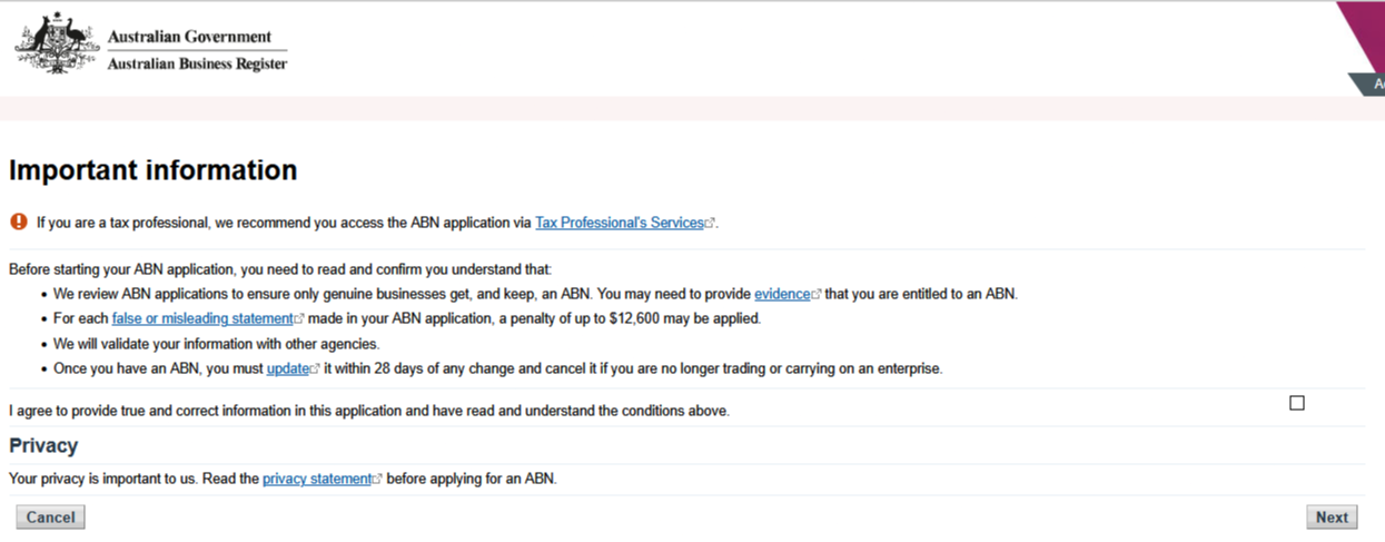 • ‘Apply or reapply for an ABN’ 버튼을 클릭해 다음 단계로 이동합니다.